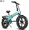 ENGWE EP-2 complace gratamente con el juego completo: el paquete contiene todo lo que necesita, además, la bicicleta viene semi-ensamblada.El montaje posterior no causa dificultades gracias a las instrucciones disponibles. Hay tres opciones de control: pedaleo mecánico, conducción totalmente automatizada y modo mixto. La velocidad no está nada mal, aunque no es un modelo de tracción total. El motor de 500 W proporcionará un alcance de hasta 60 km con una sola carga. Las revisiones escriben que la fatbike se conduce sin problemas, la banda de rodadura del neumático es bastante adecuada para todo terreno. Toda la información importante se puede ver en la computadora monocromática ubicada en el volante. La única advertencia es que es difícil cambiar de millas a kilómetros.
