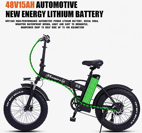 Keeper&Jim R8 puede llamarse la mejor relación calidad-precio. Tiene llantas duraderas que manejan fácilmente cualquier aspereza en las carreteras. Gracias a varios modos de control, puedes recorrer largas distancias (hasta 90 km) sin recargar la batería. La mayoría de las piezas están hechas de aleación de aluminio. La altura del asiento es ajustable entre 60-90 cm.Fatbike pesa un poco, se pliega cómodamente, apta para niños y adultos. La pantalla a prueba de agua muestra el nivel de batería restante, la velocidad actual, etc. Las desventajas incluyen el pequeño diámetro de las ruedas, solo 20 pulgadas. Por este motivo, no se recomienda elegir Keeper&Jim R8 para conducir en zonas montañosas.