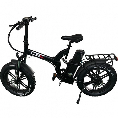 La CSC Fat Tire es una fat bike con una potente batería diseñada para montar en montaña. Tiene llantas de 20 pulgadas y un potente motor de 500W. El marco es de fibra de carbono, los manubrios son cuernos diseñados para reducir la carga en las manos. La batería se carga en 6-7 horas, después de lo cual puede conducir 50-60 km. Al realizar un pedido en Aliexpress, debe seleccionar un kit con o sin batería. Las revisiones destacan la excelente mano de obra de la bicicleta eléctrica. Las ruedas son bastante ligeras gracias a los radios aerodinámicos y el desviador Shimano funciona a la perfección. Los resortes y los neumáticos gruesos brindan una buena amortiguación. La principal desventaja de CSC Fat Tire era la poca visibilidad de los números en la pantalla.