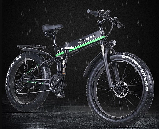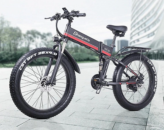 Este modelo eléctrico tiene dos características. En primer lugar, Sheng milo MX01 está equipado con un potente motor sin escobillas de 1000W. Es capaz de desarrollar una velocidad impresionante y escalar obstáculos en un ángulo de hasta 35 °. En segundo lugar, no hay 7 modos de velocidad, sino 21, lo que distingue a la fat bike eléctrica de los competidores de Aliexpress. El marco está hecho de aleación de aluminio 6061, se proporcionan faros para iluminación nocturna. Las ruedas son de tamaño completo, el diámetro de las llantas es de 26 pulgadas (el ancho de cada una de ellas es de 4 pulgadas). Los frenos de disco hidráulicos resultaron moderadamente sensibles y suaves. El inconveniente más significativo es que hay problemas con los pedales. También en las reseñas se quejan de lo caro.