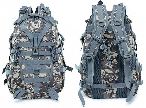 Una mochila táctica de una empresa china poco conocida que rinde bien en la ciudad, en turismo y en juegos tácticos militares. El volumen total es de 40 litros. Esto es suficiente incluso para hacer senderismo. Es liviano, tiene una impregnación a prueba de humedad y una ubicación conveniente de bolsillos y compartimentos. Puede colgar equipos adicionales, hay sujetadores para esto. Los tirantes son anchos y fácilmente ajustables. En el pecho, se juntan con correas fastex.Hay un cinturón que reduce la carga en la espalda. El fabricante está equipado con una mochila táctica con todo lo necesario. A menos que pensara en una batería solar y un sistema de bebida. Pero hay compartimentos para una botella, una computadora portátil, varias cosas pequeñas.