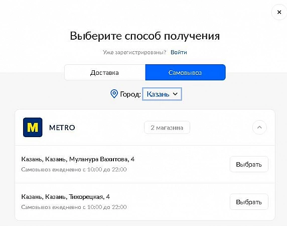 - Dirección de recogida: Kazan, st. Mullanur Vajitov, 4