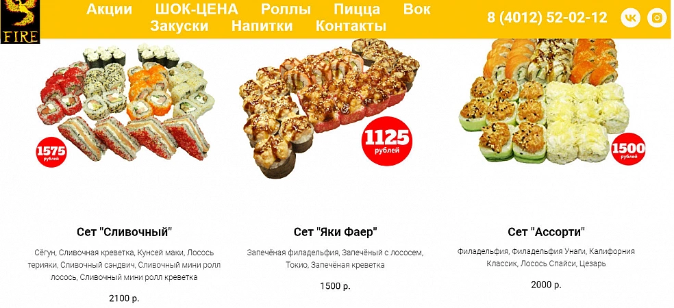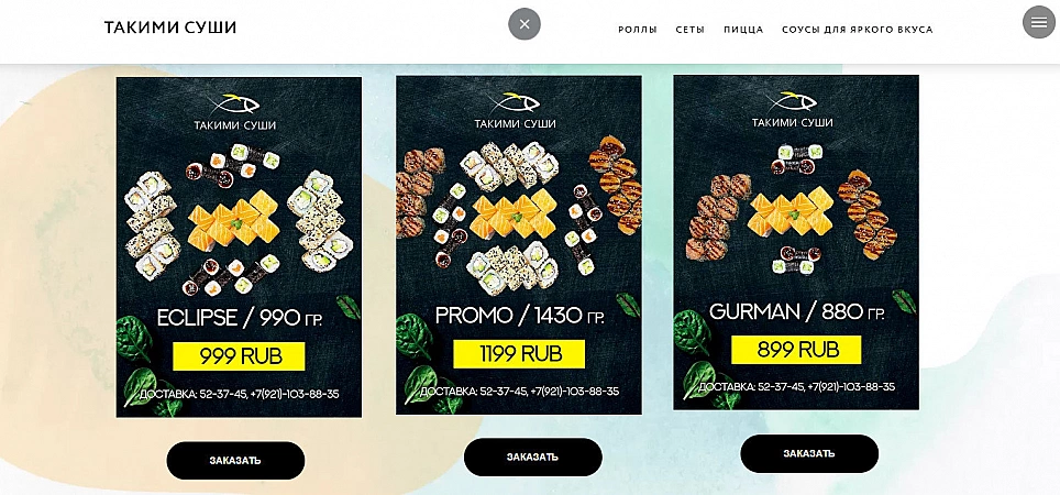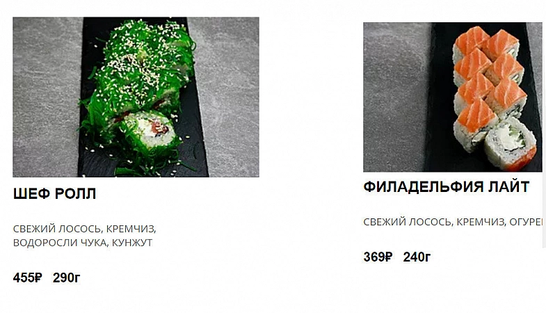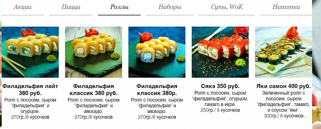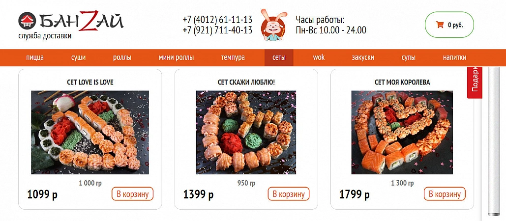 Una de las entregas más tenaces de rollos, sushi en Kaliningrado. Trabajando continuamente durante 10 años.