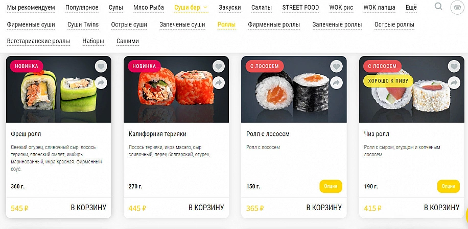 Compre rollos, sushi, gunkans, sándwiches y WOK. La entrega funciona en un área, pero la recogida también está disponible aquí. La institución se hizo famosa por sus precios económicos: aquí puede pedir un juego de rollos que pesan 2,4 kg por solo 2000 rublos. Esta es una de las mejores ofertas en Kaliningrado. A juzgar por las reseñas, los rollos no solo son asequibles, sino también bastante sabrosos. Por cierto, la carta incluye sushi de pescado y marisco fresco, aperitivos al horno y ensaladas. La tienda comienza a cocinar solo después de realizar un pedido: los clientes siempre reciben alimentos frescos en casa.En la página de VK, la institución a menudo realiza promociones y sorteos de regalos, lo que la hace aún más atractiva. Pero algunos chefs echan a perder la impresión general positiva de la tienda. A veces, sin embargo, las tiradas no son del todo exitosas, de ahí la baja calificación.