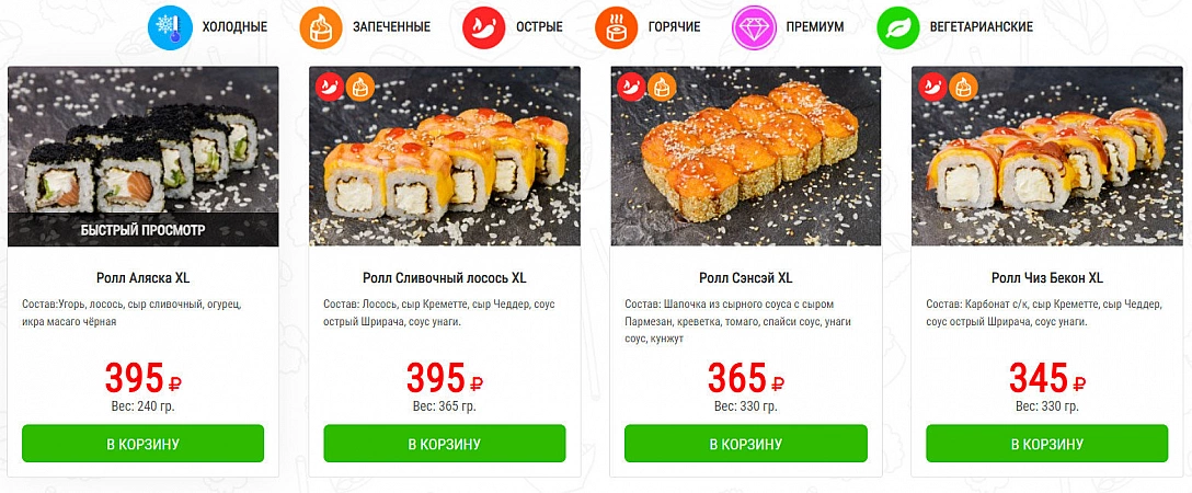 Esta es una de las mejores entregas de comida japonesa en Kaliningrado. A juzgar por las críticas, aquí se preparan rollos grandes con un buen relleno.