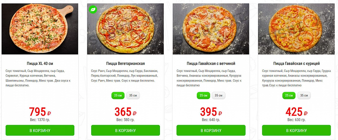 - Entrega: gratis para pedidos superiores a 800 rublos.