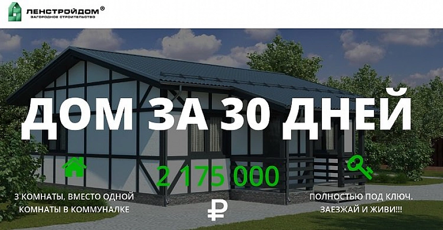 LenStroyDom tiene varios proyectos en su catálogo que participan en la oferta especial "Casa en 30 días", que le permite obtener una vivienda lista para habitar en solo un mes.
