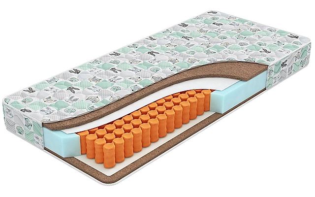 Fibra de coco. Material duro natural fabricado con fibras de coco (coir) impregnadas con látex natural. Tiene excelentes propiedades ortopédicas, por lo que se recomienda para niños pequeños de hasta 3 años. Al elegir, considere: cuanto mayor sea el grosor de la fibra de coco, más duro será el colchón.