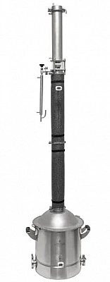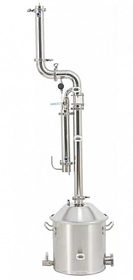 Columna de destilación. No produce alcohol ilegal, sino alcohol de máxima graduación con un mínimo contenido de impurezas. El producto final pierde por completo las propiedades organolépticas del producto original, y es bueno para la elaboración de tinturas y licores. Para Calvados, whisky, chacha y otras bebidas aromáticas, el método de rectificación no es adecuado. Pero los nodos en tales alambiques de alcohol ilegal están conectados por abrazaderas. De ahí la versatilidad: se convierten fácilmente en un destilador para la primera destilación o en una columna de cerveza.