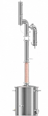 El alcohol ilegal todavía apareció a la venta hace aproximadamente un año y provocó acaloradas discusiones entre los destiladores. El nuevo modelo corrigió muchas deficiencias anteriores. Una columna de tres pulgadas con dos cajones de 50 cm cada uno tiene un alto rendimiento. En las características se declara hasta 2 litros por hora. La cubierta del domo brinda espacio adicional para que suba la espuma. Se coloca más puré en el cubo. Puede trabajar en una cocina de inducción o un elemento calefactor. Ambos ya están provistos por el diseño. Se aumenta el volumen del cubo añadiendo módulos de 20 litros. Los modelos similares de otras compañías son al menos una vez y media más caros.
