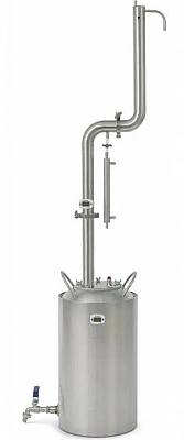 Un alcohol ilegal simple y confiable para principiantes. Este es un destilador clásico con un vaporizador seco, pero con un lado y una conexión de abrazadera. Si este diseño deja de adaptarse, se puede modernizar. El cubo soportará con calma el peso de la columna, se mantendrá firme debido a que el tsargi se desplazó hacia un lado. El dispositivo es bajo en la configuración básica, se puede colocar en la estufa. El termómetro está en el ambiente de vapor, muestra con precisión la temperatura. Pero según las opiniones de los usuarios, también hay deficiencias. Esta es una tapa roscada inconveniente de un vaporizador y una tapa delgada de un cubo. El fondo es ferromagnético, pero ligeramente cóncavo. Esto ralentiza el calentamiento de la placa de inducción.