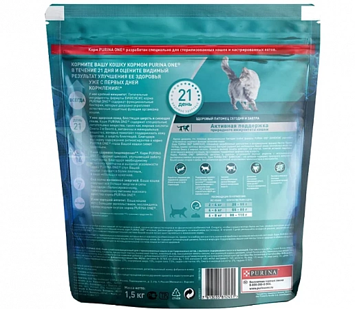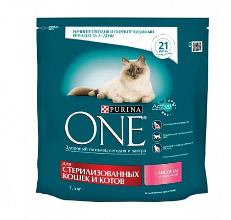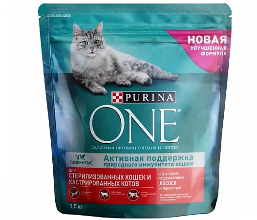 Bajo la marca Purina ONE se vende una amplia gama de alimentos - para gatitos, gatos adultos y viejos, esterilizados. Existen alimentos balanceados para mascotas con necesidades especiales. A primera vista, la composición parece bastante buena. En el ejemplo de alimentación con salmón: en primer lugar está el salmón: 15%, lo cual es raro en los alimentos de esta clase. También en la composición hay una proteína seca de pescado y aves. El trigo llena la necesidad de carbohidratos, proteínas vegetales: maíz, gluten de trigo. Complementando el valor nutricional del pienso se encuentran las grasas animales, la fibra, las vitaminas, los minerales, la levadura y los antioxidantes. Es malo que no se indique el origen del aditivo de sabor y los antioxidantes. De las ventajas, los veterinarios y los dueños de mascotas indican el contenido de ingredientes cárnicos en el alimento, y no solo despojos, y un costo relativamente bajo. De las desventajas, se puede suponer que no es la mejor calidad de las materias primas.