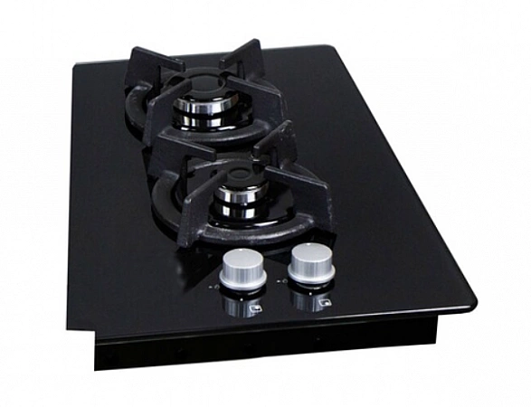 Agradable y no está mal en términos de funcionalidad panel de gas compacto. Una de las principales ventajas se puede llamar rejillas cómodas de hierro fundido, incluso los platos pequeños son estables en ellas. Por otro lado, tendrás que despedirte de las ollas de gran diámetro, simplemente no cabrán en ninguno de los dos quemadores. La superficie del panel está hecha de vidrio templado, que es un material bastante confiable y fácil de limpiar. Para la seguridad del control de gas de uso, se proporciona un apagado de protección. Y si es necesario, el modelo se puede usar no solo en el hogar, sino también en el campo: el kit tiene todo lo que necesita para conectarse al gas embotellado.