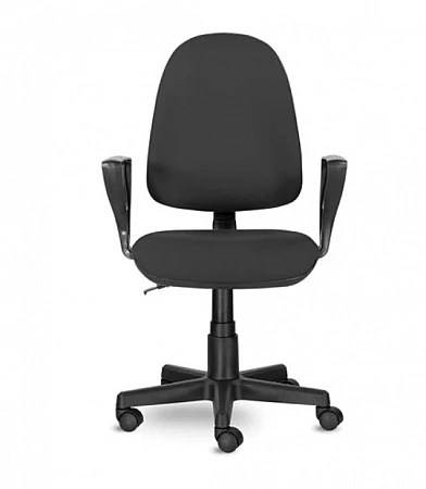 Económica silla de ordenador para el hogar con mecanismo basculante de asiento y respaldo regulable en altura. El modelo parece bastante sólido: la tapicería de plástico es estrictamente gris o negra. Soporta cargas de hasta 80 kg. El relleno es de espuma, la cruz y los reposabrazos son de plástico. La altura del respaldo y la profundidad del asiento son estándar, no ajustables. Algunos usuarios creen que la silla es bastante cómoda, fácil de armar, se usan buenos textiles para tapizar. En críticas negativas, escriben que, en casos extremos, este modelo se puede comprar, pero es mejor no escatimar y elegir una silla más cara. No soporta la carga declarada, para algunos dobla la cruz.