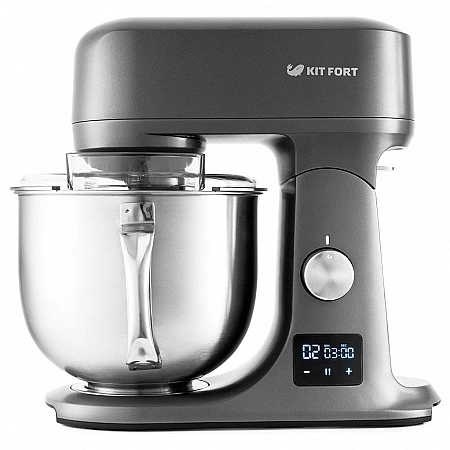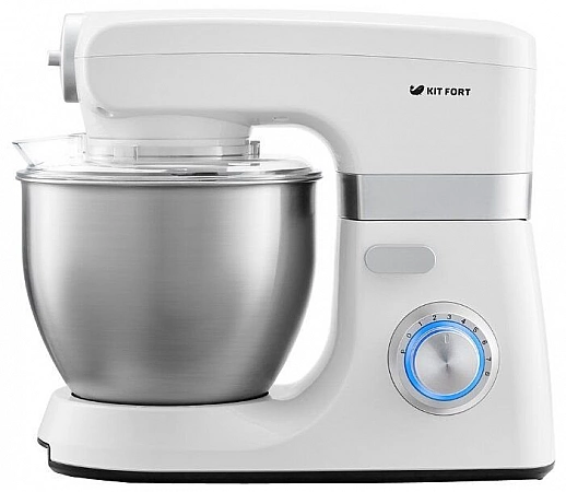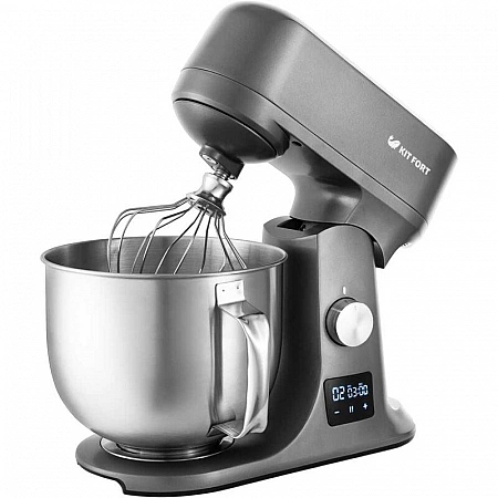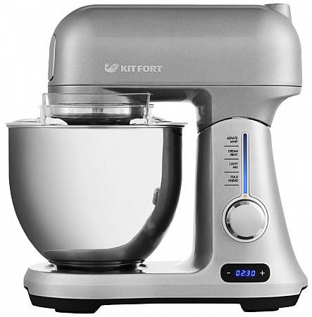 Si está buscando un electrodoméstico moderno y confiable para el uso diario, preste atención al mezclador planetario Kitfort KT-1328.Hay una pantalla conveniente que muestra toda la información sobre los modos, la velocidad y el tiempo de funcionamiento. El cambio se realiza mediante botones táctiles. El robusto cuerpo de acero hace girar el bol de 5 litros a ocho velocidades diferentes. Viene con una tapa protectora, un separador de huevos y tres accesorios clásicos. Una ventaja separada es la capacidad de configurar el tiempo usando un temporizador digital. Sin embargo, las revisiones a menudo mencionan el inconveniente del apagado automático. Algunos ingredientes deben mezclarse durante más de 10 minutos, y después de este tiempo, la batidora se apaga automáticamente.