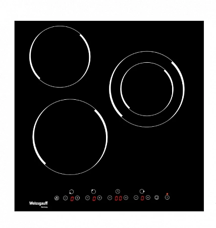 Uno de los pocos modelos eléctricos de 3 quemadores que está equipado con un control deslizante táctil. Esto significa que al configurar la temperatura, no tiene que presionar el botón varias veces, es suficiente mantener presionado el control deslizante, deteniéndose en el grado de calentamiento deseado. Pero algunos compradores en las revisiones escriben que el control deslizante no es lo suficientemente sensible. De las ventajas, se puede destacar la funcionalidad del panel.¿Cuál es la disminución automática de la temperatura cuando el líquido hierve? Por lo general, esta opción es típica de los modelos más caros. El indicador de calor residual está bien implementado: no se apaga hasta que la superficie se haya enfriado por completo. Un pequeño inconveniente: quedan huellas dactilares en la vitrocerámica.