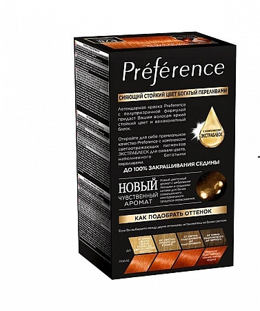 La pintura Preference de la marca francesa L'Oreal Paris promete obtener un resultado duradero, brillo de las hebras hasta por 8 semanas y cobertura del 100% de las canas. Los pigmentos colorantes volumétricos permanecen en la estructura del cabello durante mucho tiempo, creando un color resistente al lavado. Además de la pintura y la crema reveladora, el kit también incluye un bálsamo para mejorar la durabilidad y un par de guantes. La paleta Preference está representada por cuatro docenas de tonos, entre los que se encuentran la mayoría de los colores más populares y buscados. Las reseñas sobre la herramienta suenan en su mayoría buenas. Las mujeres notan que su cabello se vuelve más brillante. Las opiniones negativas están asociadas con un olor acre, así como con una consistencia insuficientemente espesa.