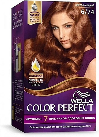 La crema Color Perfect de Wella se basa en la última fórmula patentada, que ayuda no solo a dar color al cabello, sino también a mejorar su estructura y apariencia. Los componentes para la hidratación profunda protegen de manera confiable los rizos del daño y aumentan la fuerza del color, que se sella en el interior durante mucho tiempo. Casi tres docenas de tonos están representados principalmente por opciones clásicas. Gracias a la textura de la crema, el producto es fácil de aplicar y no fluye. Incluye pintura en crema, un bote de oxidante, dos sobres con bálsamo y guantes.Es muy conveniente que no necesites platos adicionales para mezclar los ingredientes, y el dosificador te permitirá no usar cepillo.