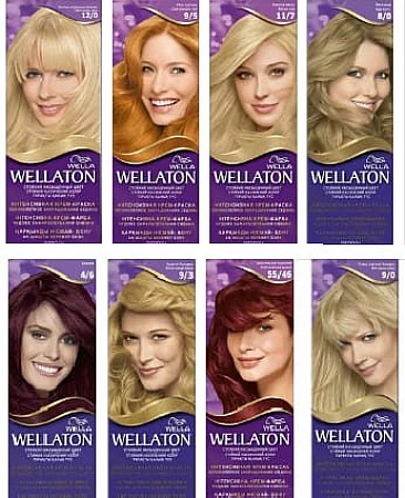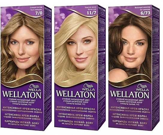 Wellaton Intensive Cream Color es una de las mejores soluciones para la coloración a largo plazo. Contiene amoníaco, que garantiza la durabilidad del resultado, y su impacto potencialmente negativo se equilibra con la presencia de vitaminas y pantenol. El kit incluye, además del tinte, un revelador, un sérum para mantener la duración del color y un par de guantes. La paleta está representada por dos docenas de tonos, entre los que se encuentran tanto naturales como bastante extravagantes. En su mayor parte, las reseñas de mujeres sobre Wellaton suenan bien. Al igual que otros compuestos colorantes con amoníaco, puede secar el cabello, huele bastante fuerte, pero el color después de su aplicación es realmente persistente y expresivo.