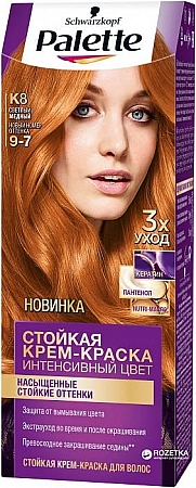 La pintura en crema Palette Intensive Color, ofrecida por la popular marca Schwarzkopf, contiene pigmentos muy intensos que penetran profundamente en la estructura y garantizan un color rico que dura mucho tiempo. La queratina y el pantenol en la composición brindan el cuidado necesario tanto durante el proceso de tinción como después. A pesar del bajo costo, la pintura pinta perfectamente sobre las canas, pero en las revisiones, muchos notan que el color esperado no siempre coincide con la realidad. El set incluye una crema colorante, una emulsión reveladora, un bálsamo de cuidado y un par de guantes. La paleta de tonos es clásica, tiene casi tres docenas de variaciones.