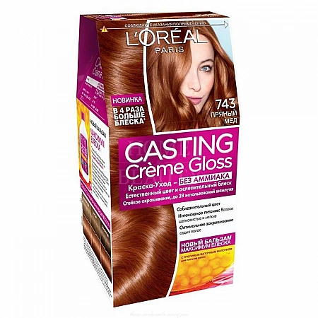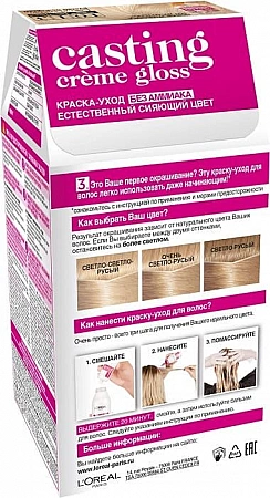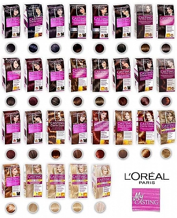 La pintura Casting Creme Gloss de la marca francesa L'Oreal Paris es una de las más populares en el mercado masivo. No contiene amoníaco, promueve una coloración duradera y suave sin daños. Además de la crema colorante, el complejo incluye una leche en desarrollo, así como un bálsamo de cuidado. Una botella conveniente con un aplicador le permitirá aplicar el producto y los guantes de manera rápida y precisa, para evitar manchar la piel de sus manos. La paleta Casting Creme Gloss contiene más de 50 tonos diferentes que pueden transformar y sorprender, pintar sobre canas y cambiar radicalmente la imagen. Hay muchas críticas sobre esta pintura, en su mayoría suenan positivas, pero muchas notan la discrepancia entre las expectativas y el color resultante.