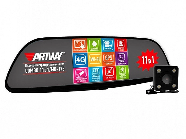 Artway MD-175 es una tableta DVR con espejo retrovisor conectada a dos cámaras. Tal solución ahorra espacio en el parabrisas y deja una vista libre, al tiempo que amplía significativamente las capacidades técnicas del automóvil.
