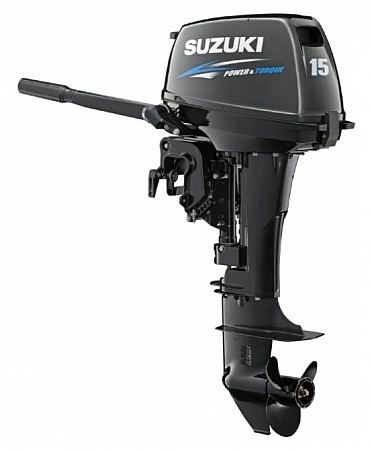 Golpe de ventas entre los motores de 15 caballos de fuerza según el sitio web del representante oficial de Suzuki en Rusia.