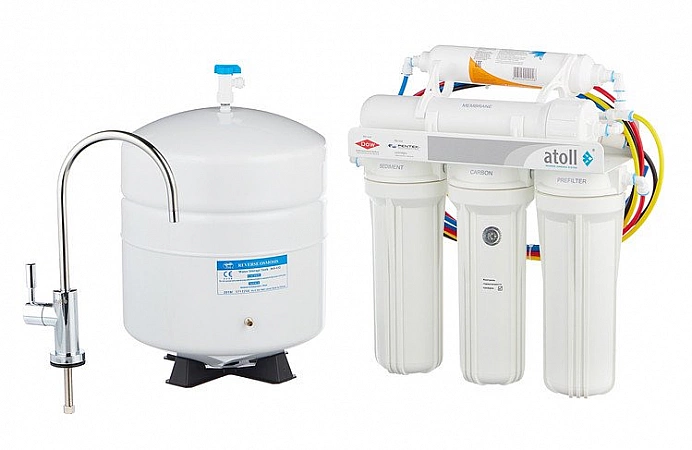Sistema de ósmosis inversa compacto con una capacidad de 0,184 l/min. Filtra bien el agua incluso a baja presión. Fácil de instalar, requiere reemplazo de filtro cada 5-6 meses. Los cartuchos en sí son confiables y no requieren un enjuague completo la primera vez que se usan. El agua es limpia, suave y agradable al paladar. Por cierto, cuando se agota el recurso de los filtros nativos, se pueden reemplazar con consumibles similares de empresas rusas. Por ejemplo, cartuchos de la marca Atoll.De las graves deficiencias del modelo, los propietarios destacan solo la falta de volumen utilizable de la unidad, así como el matrimonio de la junta. Los dispositivos defectuosos son raros, pero es mejor revisar cuidadosamente el sistema antes de comprarlo.