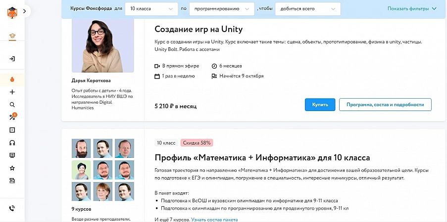 Foxford es una escuela en línea completa donde puedes estudiar cualquier materia del plan de estudios escolar, así como aprender programación desde los conceptos básicos. Los cursos se construyen en función de la edad de los estudiantes. Para los niños en los grados 1-4, se llevan a cabo actividades emocionantes que ayudarán a desarrollar un interés en el aprendizaje. Las lecciones para estudiantes en los grados 5-9 están dirigidas a un estudio más profundo del material. Los graduados de los grados 10-11 se preparan aquí para la admisión a las universidades y se les presentan temas de programación complejos. Las clases son impartidas por profesores de la Universidad Estatal de Moscú, el Instituto de Física y Tecnología de Moscú, la Escuela Superior de Economía y otras instituciones educativas líderes del país.Desafortunadamente, hubo algunos inconvenientes: hay quejas de que el sitio no siempre funciona correctamente y es posible acceder a las lecciones en cualquier otro momento, mientras que el servicio de soporte a menudo está inactivo.