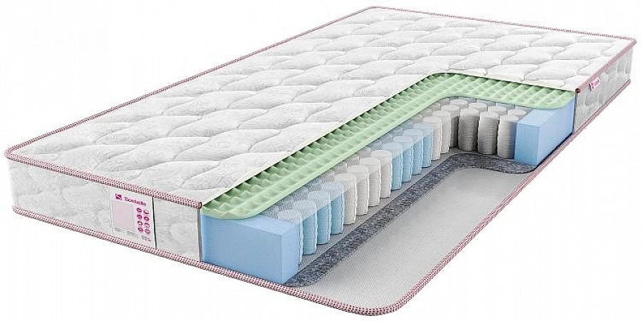 En el colchón de muelles Sontelle, un lado está destinado a dormir. Debido a esto, el fabricante logró reducir el precio sin sacrificar la calidad, las propiedades anatómicas y ortopédicas. Los resortes del bloque no están interconectados, la acción del punto distribuye uniformemente el peso del cuerpo y sostiene la columna vertebral. El látex artificial es moderadamente suave, pero resistente. La superficie del relleno está grabada para un efecto de masaje, mejorando la circulación sanguínea durante el sueño. Además de la relación precio-calidad, el colchón es adecuado para personas que deseen adquirir un producto ortopédico, pero que no estén acostumbradas a dormir sobre superficies duras. La calidad es fácil de evaluar a partir de las opiniones de los clientes: las costuras están limpias, la cubierta está hecha de tejido jacquard denso, los resortes no se sienten.Menos: el modelo no es adecuado para personas con sobrepeso, se desliza con el tiempo.