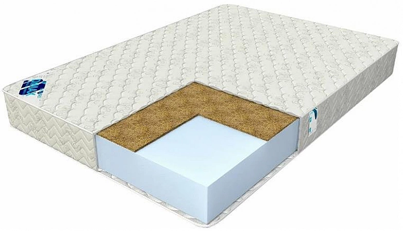 Cómodo colchón sin resortes para dormir con un grosor de 20 cm Una gruesa capa de un análogo de látex artificial se complementa con fibra de coco natural. Un lado del colchón es suave y el otro es firme. El relleno de espuma EcoBalance es elástico, se adapta a los contornos del cuerpo humano y luego vuelve rápidamente a su estado original. El material sostiene la columna vertebral, brinda un buen descanso y un sueño saludable. El látex artificial y la fibra de coco son higiénicos e hipoalergénicos. Una cubierta acolchada hecha de tela jacquard y un acondicionador de invierno sintético crea una comodidad adicional y preserva la integridad del relleno. El colchón viene en un rollo para facilitar el transporte. Los compradores comparten sus impresiones en las reseñas: la calidad justifica el precio. El modelo es moderadamente suave, es cómodo para dormir, no hay dolores de espalda por la mañana. Los usuarios negativos llaman un olor extraño, que desaparece en 1-2 días.