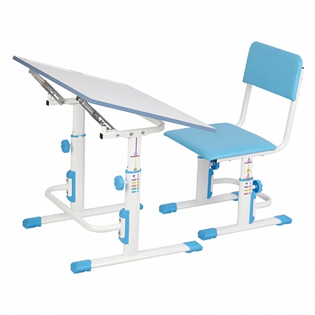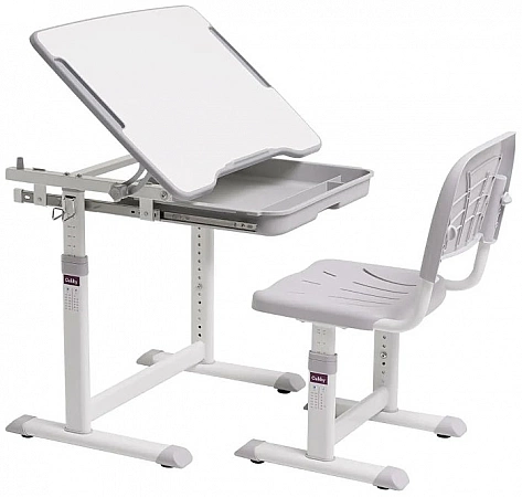 Durante el crecimiento activo del niño, es muy importante mantener la posición natural de la columna. Los ejercicios de pie son una de las formas más importantes de prevenir la escoliosis. Este kit versátil está diseñado para trabajar tanto de pie como sentado. La altura del escritorio es ajustable en 50-75 cm y es adecuada para niños con una altura de 80-150 cm La silla tiene un reposapiés extraíble. El gran tablero de 74x64 cm está instalado en posición horizontal e inclinado 17 grados. Un pestillo especial le permite arreglar el papel y, al mismo tiempo, colocar los bolígrafos. Los clientes dicen que el diseño es muy estable y permite que el niño se apoye con seguridad en la mesa. También les gusta el diseño, la facilidad de ajuste y la calidad de los muebles. Es cierto que a veces hay una desalineación de los orificios para los tornillos, lo que dificulta el montaje.
