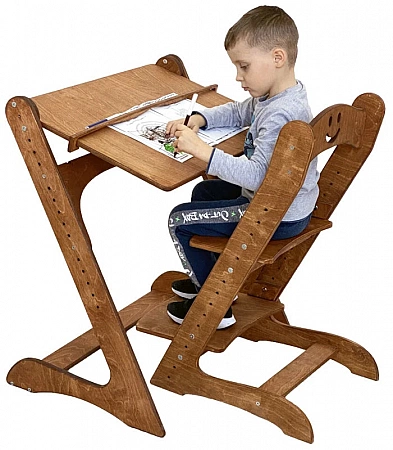 La mesa y silla de cultivo de madera de un fabricante ruso está diseñada para niños en edad preescolar de 100-130 cm de altura.El diseño lacónico y las 3 opciones de color le permiten convertirse en una decoración de cualquier interior. La altura de la mesa tiene 3 niveles de ajuste: 39, 44,5 y 50 cm La trona también puede tener 3 niveles de asiento: 27,31 y 35 cm La superficie de la mesa no cambia el ángulo de inclinación.Pero, en ausencia de un cajón para papelería, inclinar la encimera sería un inconveniente. El conjunto está hecho de madera contrachapada de abedul de alta calidad con clase de emisión E1. Tiene una pintura que cumple con los requisitos de seguridad de los muebles y juguetes infantiles. A los clientes les gusta el diseño clásico, los accesorios fiables y el diseño de la mesa, que permite que un niño de 1 a 7 años pueda estudiar en ella.