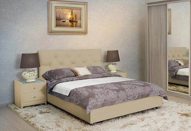 La cama de la marca Marlena "Ascona" es una combinación de belleza y practicidad. La forma clásica se ve actualizada debido a la noble tapicería de cuero ecológico. La espuma de poliuretano hace que la cabecera sea suave y la regla del carro la hace elegante. Una caja está oculta debajo de la base con un mecanismo de elevación. Ocupa todo el espacio, no está dividida en compartimentos, por lo que puede albergar grandes mantas y almohadas. Los listones anchos son la mejor base para un colchón ortopédico de cualquier grosor. Ascona se ha establecido durante mucho tiempo como fabricante de productos para dormir de calidad. Los clientes dejan comentarios positivos sobre esta cama. El modelo es hermoso, complementa el interior del dormitorio en cualquier estilo. Los usuarios ponen un pequeño inconveniente solo por el precio, que aún aumenta después de comprar un colchón. Acabado solo en ecopiel, pero en 12 tonos pastel.