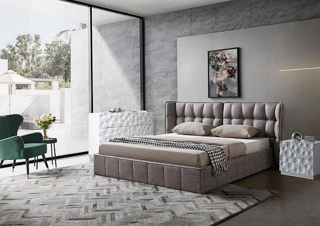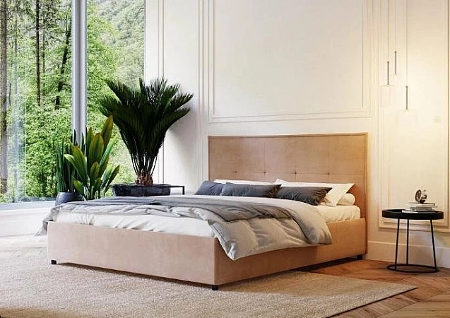 Cama económica para dormitorios al estilo del minimalismo. Una forma simple sin detalles innecesarios, un respaldo alto y delgado con tapicería de tela: el modelo parece simple, pero al mismo tiempo elegante. El fabricante ofrece a los clientes opciones de tamaño: 140x200, 160x200, 180x200 cm La empresa también acepta pedidos, fabrica un modelo en tamaños no estándar. Por ejemplo, 200x200 cm Hay dos tipos de tapizado a elegir: estera y velour. El cuidado de la cama se ve facilitado por una cubierta extraíble en los lados. Si es necesario, se puede lavar. La base está equipada con un mecanismo de elevación de gas. Levanta el colchón con suavidad y facilidad, incluso un niño o una persona con discapacidad puede manejarlo. Una caja de ropa está oculta debajo de la base, pero solo ocupa la mitad de la longitud de la cama.