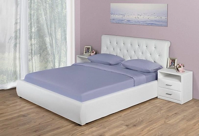 La cama doble "Santa" combina un diseño elegante, tapicería de cuero genuino, mecanismo de elevación de gas. Debajo de la base hay una gran caja de ropa sin división en compartimentos. Respaldo alto tapizado en suave espuma de poliuretano decorado en técnica capitonné y complementado con brillantes pedrería. Y todo esto por un precio de poco más de 20.000 rublos. El kit ya viene con una base ortopédica hecha de láminas. Solo queda elegir un colchón cómodo. El fabricante aconseja detenerse en modelos que pesen hasta 30 kilogramos para que el elevador de gas funcione sin problemas. El lugar para dormir de 140x200 cm está diseñado para dos personas de constitución media.Si la cama parece estrecha, puede elegir un tamaño diferente del mismo modelo: 160x200 cm y 180x200 cm El modelo es hermoso, pero los compradores se quejan de que después de 2 o 3 años de funcionamiento, el cuero artificial comienza a agrietarse.