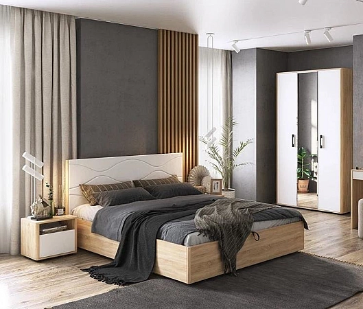 Una cama de estilo provenzal lacónica, pero al mismo tiempo delicada, está hecha en una combinación contrastante de dos tipos nobles de madera. La ausencia de tapicería blanda hace que los muebles sean prácticos y simplifican el mantenimiento. El elevador de gas eleva la base debajo del colchón desde un marco de metal y listones ortopédicos. Debajo hay dos cajones espaciosos para almohadas, mantas y otra ropa de cama. Los accesorios alemanes hacen que el funcionamiento del mecanismo elevador sea fácil y suave. Incluso un niño puede levantar la base. En las revisiones, los usuarios dieron una gran ventaja a la buena calidad de los materiales y la mano de obra precisa. Todos los detalles se ajustan con precisión entre sí, no hay chirridos, la cama es estable. Lo único frustrante es la imposibilidad de pedir un modelo en un tamaño no estándar y elegir un color.