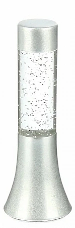 Una pequeña luz de noche con lentejuelas plateadas brillantes es una excelente opción para una guardería o un dormitorio. La luz suave y discreta y el brillo que se mueve suavemente en el agua clara se ven muy acogedores y tranquilos antes de irse a la cama. Sin embargo, no todo es tan simple. Si la lámpara se mueve o se sacude, comienza a cambiar de color y los niños la toman con especial deleite. La altura del dispositivo es de 17 cm.Este modelo funciona con 3 pilas LR44, por lo que se puede colocar en cualquier lugar, independientemente de la ubicación de las tomas. La lámpara LED consume poca energía, por lo que las pilas duran mucho tiempo. Lo único es que la lámpara no tiene botón de encendido.Se apaga automáticamente y se activa al agitarlo; esto no siempre es conveniente.