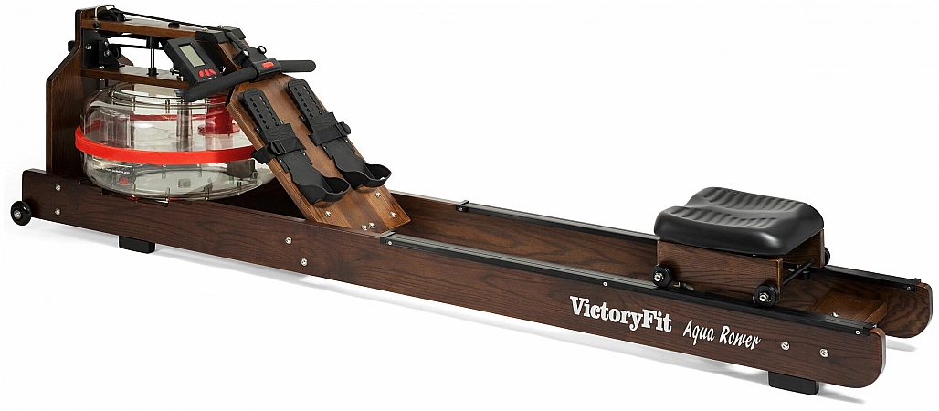 Este entrenador doméstico atraerá a aquellos que aprecian no solo la practicidad, sino también el estilo. VictoryFit VF-WR800 está fabricado con materiales de calidad y parece muy caro gracias a la caja de madera. El simulador está equipado con un sistema de carga de agua que simula por completo los viajes en barco. El dispositivo tiene una capacidad de carga máxima de hasta 160 kg, así como 5 niveles de carga: desde principiante hasta profesional. Al igual que otras máquinas de remo, ayuda a enderezar la postura, estirar la columna y fortalecer los músculos de la espalda. También tiene ruedas de transporte y se puede guardar en posición vertical.