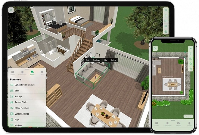 Con este programa, no tiene que elegir en qué dispositivo trabajar: es compatible con todos los sistemas operativos, hay una aplicación móvil y la capacidad de usarla en línea desde el sitio. Un desarrollo digno de un fabricante ruso, respectivamente, también hay soporte para el idioma ruso. Las versiones móviles tienen función de sincronización y realidad aumentada. Puede diseñar absolutamente todo, desde una habitación u oficina separada hasta una casa, hay un gran conjunto de herramientas para esto. El trabajo es muy fluido, especialmente en el modo 2D, cuando se cambia a 3D en ocasiones se retrasa. El catálogo es extenso, además de muebles incluye un gran conjunto de elementos de decoración, pero para esto es mejor comprar una versión paga, en el móvil, para usar más funcionalidad, tendrás que ver molestos anuncios.