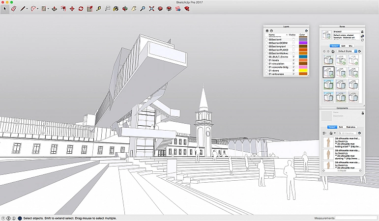 Desarrollado hace más de 20 años como un competidor asequible para gigantes como Maya y 3Ds Max. Si tiene que pasar mucho tiempo aprendiendo esto último desde cero si no tiene las habilidades básicas, en el caso de Google SketchUp, todo es mucho más simple y cualquier principiante puede dominarlo intuitivamente. Otra ventaja es la presencia de una versión oficial en ruso, que se puede usar de forma gratuita. Para aquellos a quienes su funcionalidad les parece modesta, el propietario actual del producto, Trimble, ha brindado varias opciones con funciones avanzadas y un precio de suscripción relativamente bajo, desde $ 119. Para aquellos que estén interesados en el programa, los desarrolladores han creado un canal de youtube con lecciones completas para aprender desde cero. Amplia selección de modelos 3D, vista seccional, trabajo con capas, integración con Google Earth y muchas otras funcionalidades.