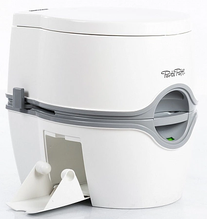 El armario seco compacto de la serie Qube de Thetford puede soportar hasta 250 kg de carga, por lo que es perfecto para la mayoría de las personas. Él mismo pesa poco, solo 3,9 kg. El depósito de agua superior tiene capacidad para 15 litros y el depósito de residuos inferior tiene capacidad para 21 litros.Gracias al indicador, es fácil entender cuándo es necesario vaciar el contenedor. El inodoro está hecho de plástico resistente a los impactos, por lo que puede usarlo en cualquier condición: en el campo, en una casa privada, en un campamento e incluso en una caminata. El alimento líquido original no solo descompone eficazmente los desechos, sino que también neutraliza los olores desagradables. Las prácticas asas de transporte facilitan el transporte del armario seco, así como la carga, por ejemplo, en el maletero de un coche. La descarga en este modelo es de agua, funciona gracias a la bomba de fuelle. Diseño simple y confiable que no lo defraudará incluso en condiciones difíciles. En cuanto a las deficiencias, los compradores notan que el asiento es demasiado bajo. Sin embargo, esto es individual.