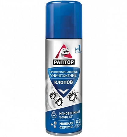 Los productos Raptor no necesitan presentación: casi todos los que alguna vez han tenido que envenenar insectos en un apartamento lo han encontrado. Este spray está diseñado específicamente para matar chinches. Dos sustancias potentes en la composición le permiten lidiar rápidamente con las plagas, incluso si anteriormente se usaron otros agentes insecticidas en el apartamento. El procesamiento no lleva más de 15 minutos, después de lo cual es necesario ventilar la habitación durante media hora. El spray es efectivo, pero su toxicidad es alta. El fabricante no recomienda rociar el aerosol sobre la ropa de cama, es mejor llevarla a la tintorería.