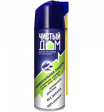 Aerosol Clean House Super está posicionado por el fabricante como una protección universal contra chinches y otros insectos. Esta herramienta presupuestaria puede envenenar la piel de escarabajos, mosquitos, avispones, avispas, moscas, hormigas y polillas. Es conveniente que haya un tubo para una pulverización precisa en las esquinas. Incluso la botella más pequeña es suficiente para procesar un apartamento grande. Las revisiones informan que el producto simplemente hace frente a los parásitos voladores, pero las chinches no siempre se pueden destruir la primera vez. Aunque se dice que el spray no tiene fragancia, todavía hay un ligero olor químico, y esto causó emociones negativas entre los compradores. También hay quejas por la aparición de manchas en las zonas de tratamiento.
