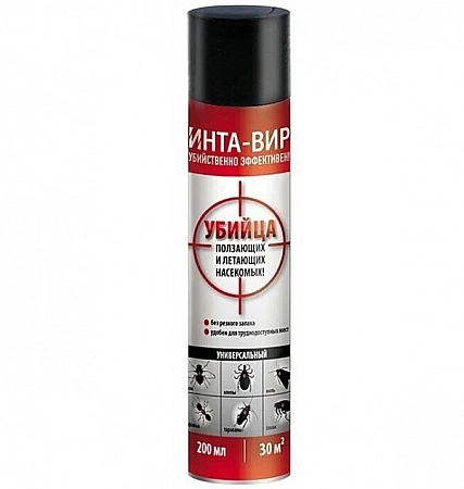 INTA-VIR llama a su producto un asesino de insectos rastreros y voladores. El fabricante enumera más de 10 tipos de parásitos que puede manejar un spray económico: entre ellos se encuentran pulgas, chinches, hormigas, avispas, mosquitos y moscas.El rociador es conveniente para lugares de difícil acceso y el producto en sí es prácticamente inodoro. Todos los compradores confirman la eficiencia, pero los propietarios de alergias o asma deben usar el producto con cuidado. Un matiz importante: con descuentos, un aerosol es realmente económico, pero en tiempos normales no se puede llamar presupuestario, el precio a menudo supera los 500 rublos. Por lo tanto, tiene sentido esperar a la venta y comprar varias botellas a la vez en reserva.