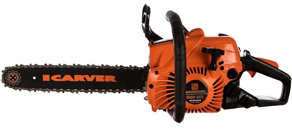 Si desea ahorrar tanto como sea posible y necesita una motosierra para su hogar, entonces la CARVER RSG 241 será una opción adecuada. Por supuesto, no existe una calidad de materiales como la de las marcas famosas, y la potencia del motor solo es suficiente para cortar en el jardín o una pequeña cantidad de leña. Sin embargo, a menudo la economía necesita una motosierra tan ligera y económica, con controles claros y cómodos. La Carver RSG 241 está equipada con un arranque fácil y funciona bien al aserrar a bajas temperaturas. Otra ventaja es la cadena y el neumático bastante resistentes al desgaste en el kit, lo cual es muy raro para una clase tan económica.