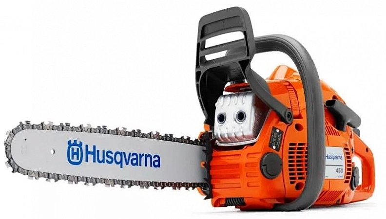 La motosierra sueca Husqvarna 450 agrada no solo por su bajo consumo de combustible, sino que también agrada a los propietarios por su comodidad. Esto incluye arranque fácil, tensado de cadena sin llave y un eficaz sistema antivibración.