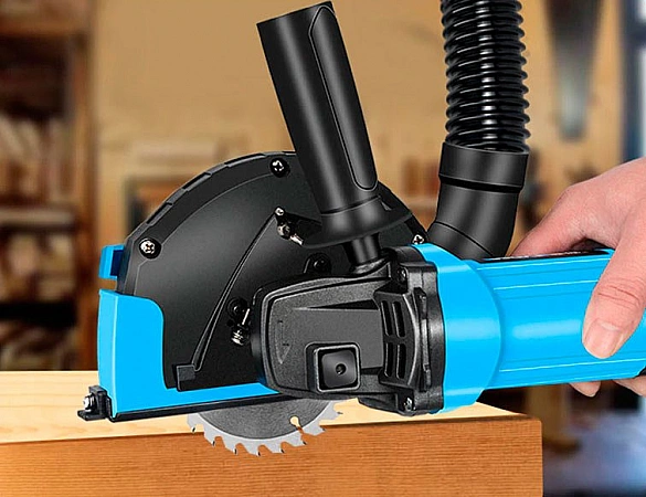 Érdemes dolog, ami minőségében nem rosszabb, mint a márkás fúvókák. A legjobb műanyagból készült, a talpa fém. Minden rögzítőelem tartósnak készült. Egy közönséges darálóból tényleg lehet jó falikeretet készíteni. A maximális vágási mélység 30 mm, a beállítás teljesen egybeesik a skálával.De még egy ilyen jó minőségű fúvókának is voltak hátrányai - 10 mm-nél nagyobb vágási mélység kiválasztásakor egy rés jelenik meg, amelyen keresztül a por egy része átjut a burkolaton. Egyes modelleken a telepítés során is nehézségek adódhatnak. És még mindig nem elégedett a tárcsa helyzetével maximális beállítások mellett - a sebességváltó oldaláról nézve túl közel van a burkolathoz, nem az eredeti helyére kell szorítani.