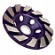Az egysoros gyémánt pengét jobb élettartam és nagy megbízhatóság jellemzi. Segít a már megkeményedett beton korrigálásában, a díszkő, tégla felületének kiegyenlítésében, tisztításában, csiszolásában, valamint festék eltávolítására is alkalmas. De óvatosan kell dolgozni. Ez a fúvóka nem távolítja el a felső réteget, hanem beleharap a felületbe. Gyémánt szemcsékkel tarkított acélból készült, alkalmas a legkeményebb anyagok száraz és nedves megmunkálására is. A vágó minőségileg készült, megbirkózik a feladataival. Gyakorlatilag nincs hátránya, kivéve, hogy a szállítási idők és a poros munka maximális.A vélemények azt is javasolják, hogy köszörülés közben ne gyakoroljon nagy nyomást a darálóra, különben a rotor szenved.