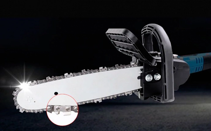 Ön előtt áll egy daráló tartozék továbbfejlesztett olajellátó rendszerrel. Elődjeivel ellentétben ez a láncfűrész kicsi, de hatékony szivattyúval és olajtartállyal rendelkezik, ami növeli versenyképességét az AliExpressen. Az adapter lehetővé teszi a sima vágást, elakadás és holtjáték nélkül. A termék minősége az egyik legjobb. Vele a daráló rönköket, vastag deszkákat, rétegelt lemezt vág. Csak a láncfék hiánya akadályozhatja meg a láncfűrész vásárlását. De ezt a pillanatot a kínaiak gondolják át - a tartó fogantyúja csapdaként szolgál, ezért gondoskodtak a fúvóka biztonságáról. Nem gondoltak arra, hogy vágás közben csak a fűrészt rögzítsék: az ütközőfogak hiánya nagyon bosszantó.